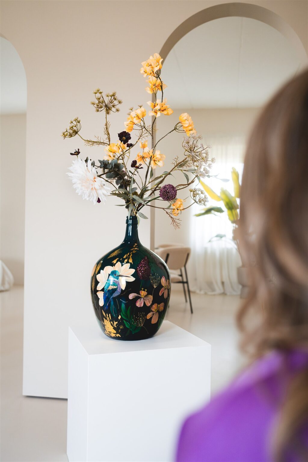 Een indrukwekkend statement, een vaas die opvalt en een ruimte definieert.