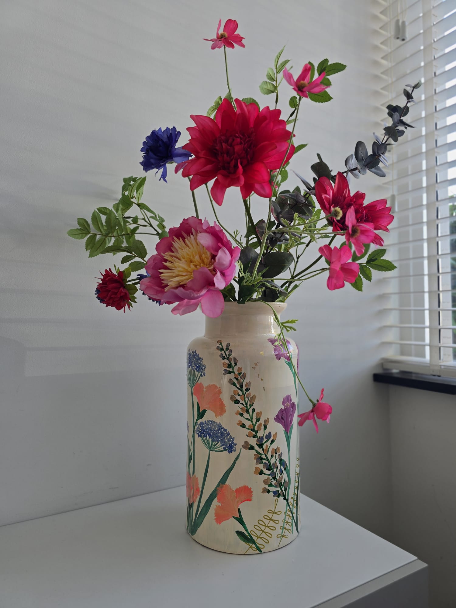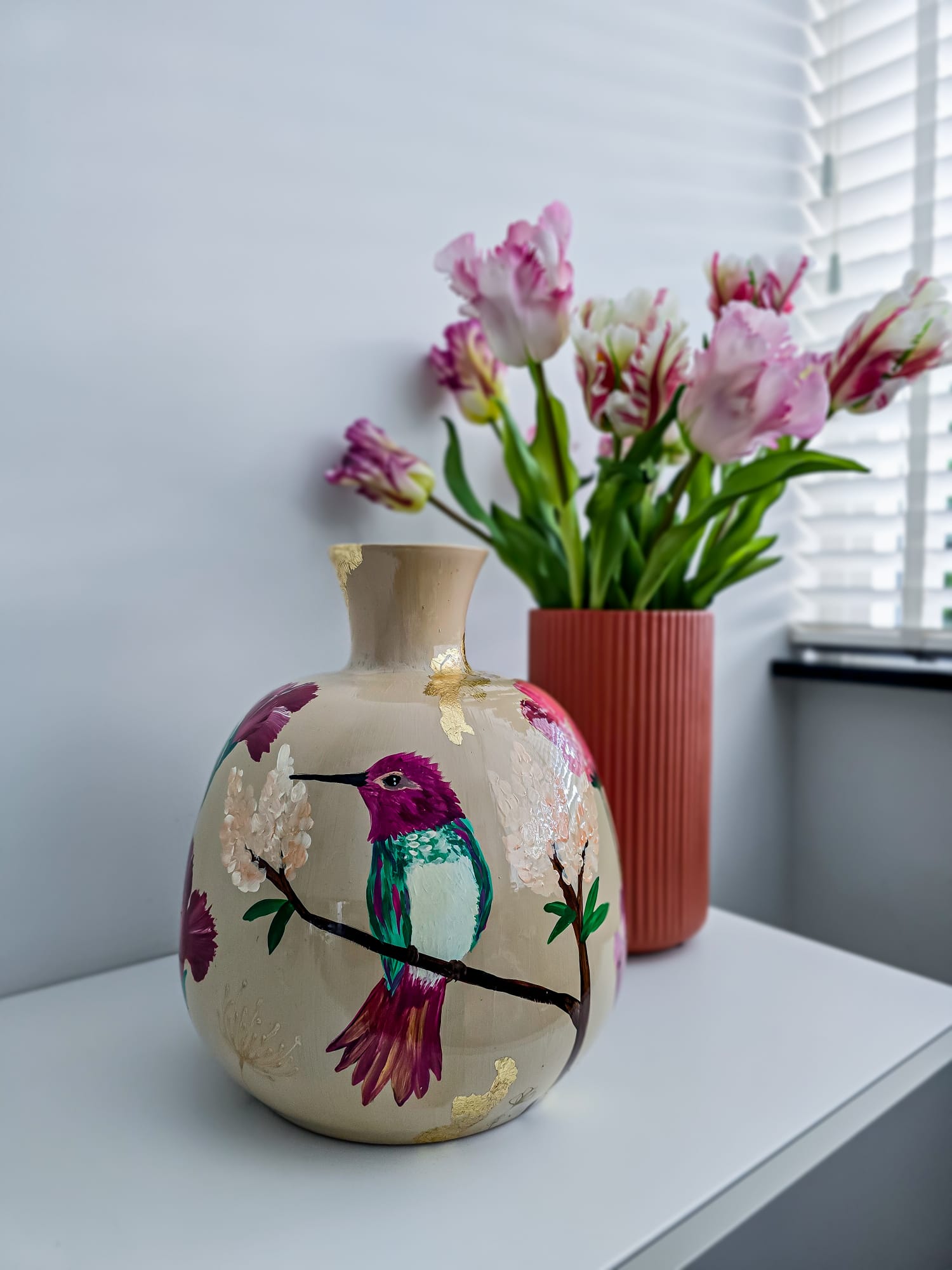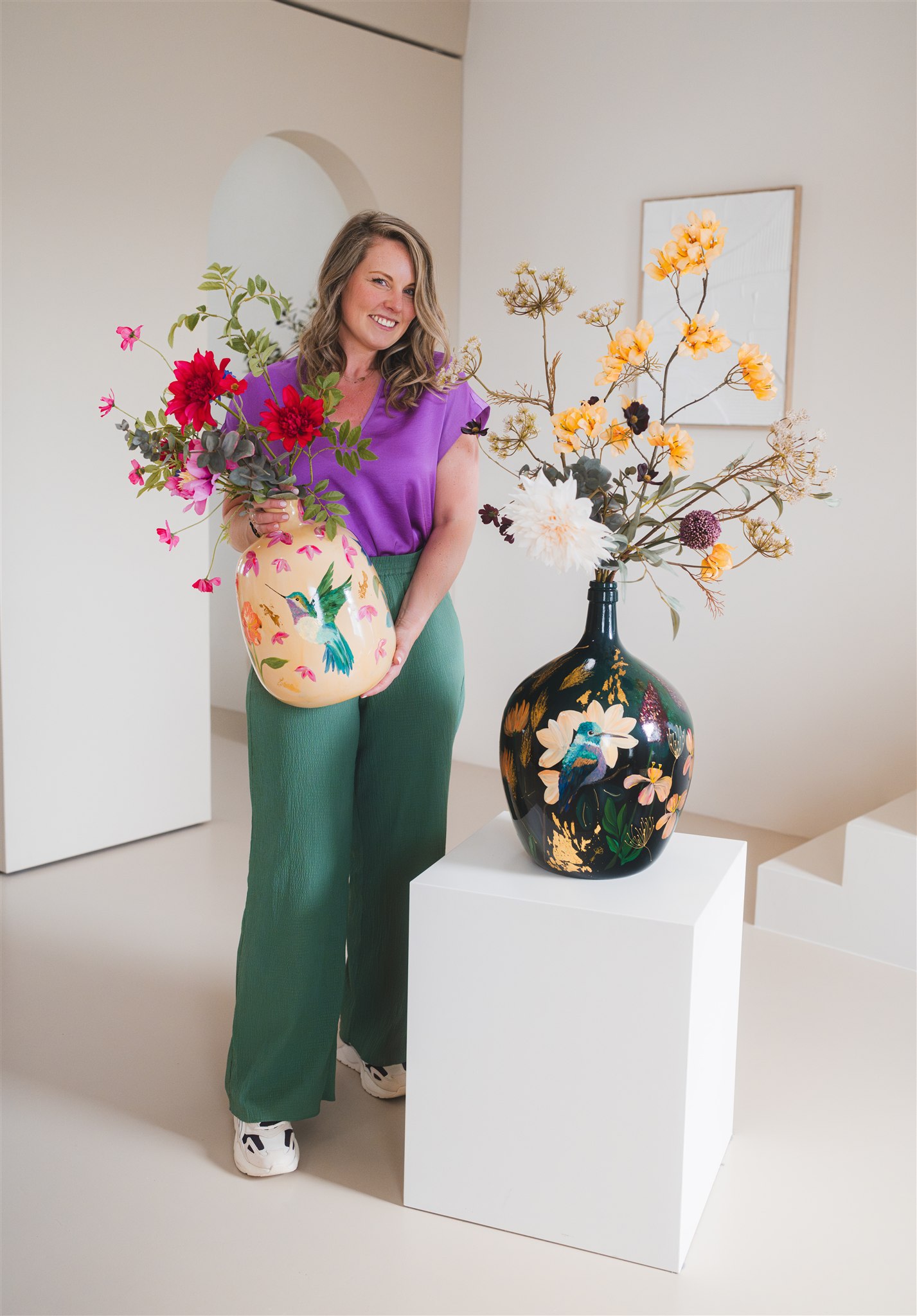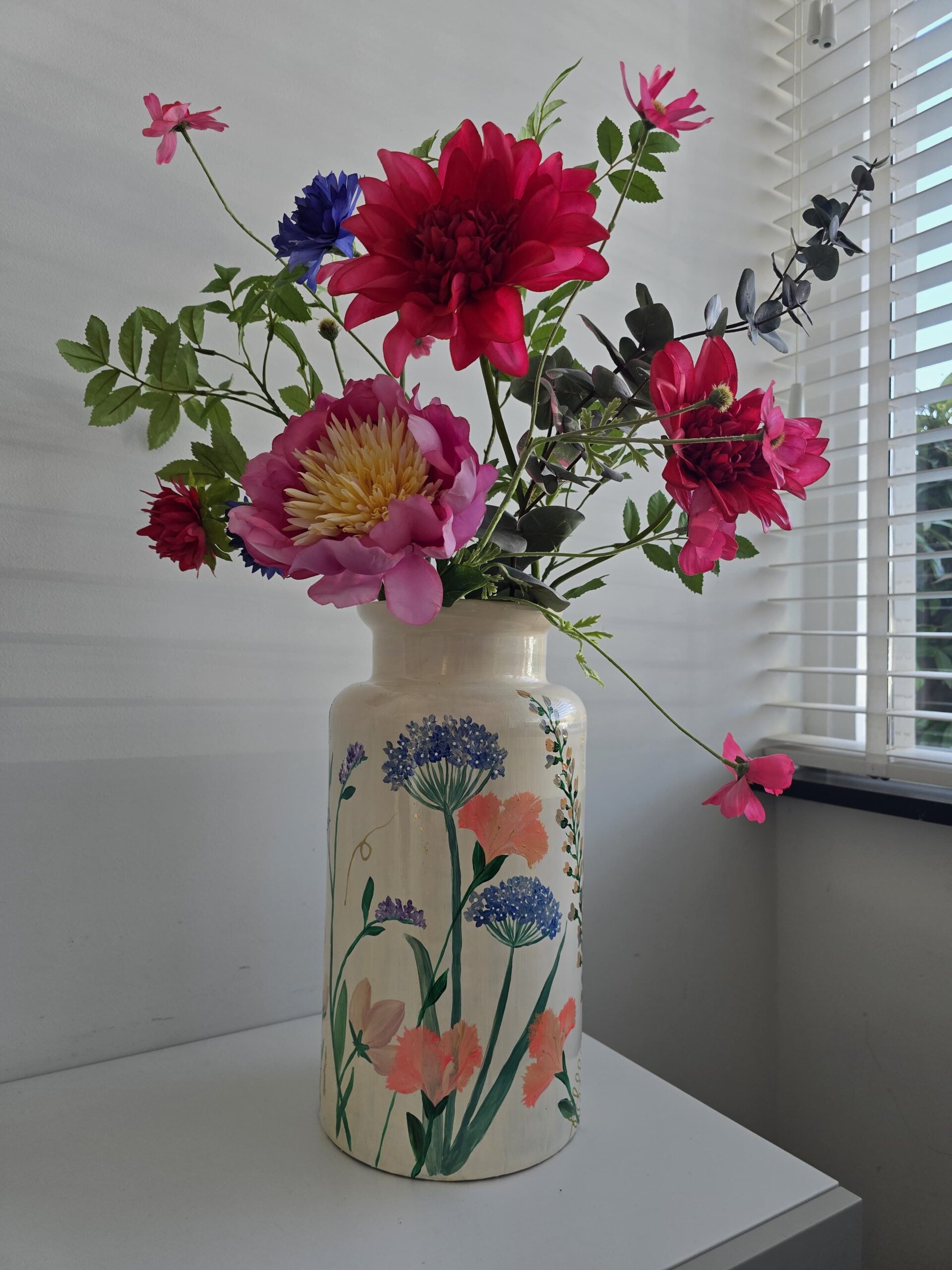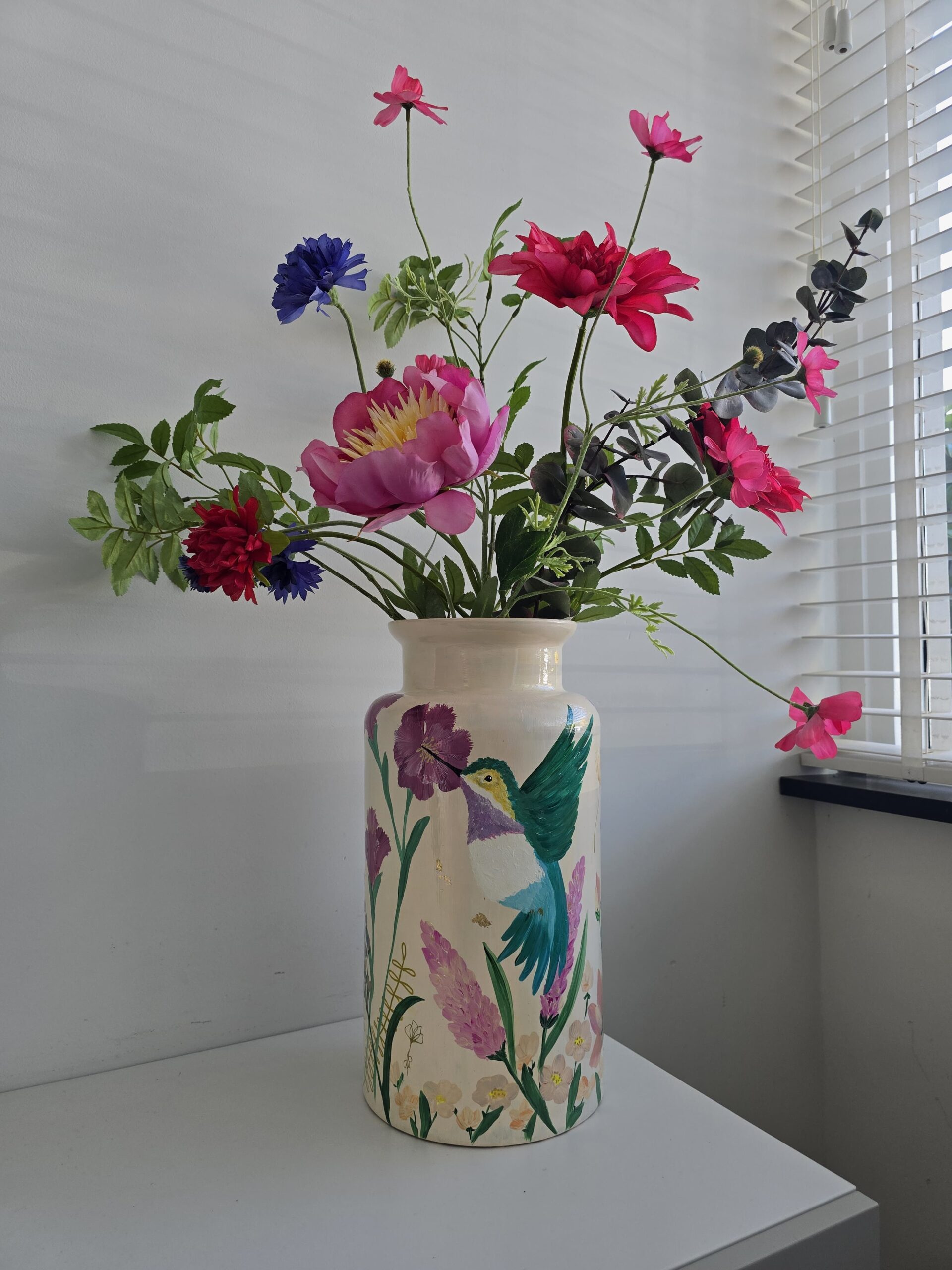 In mijn atelier werk ik met aandacht en geduld. Laag voor laag bouw ik de kleuren op tot een harmonieus geheel dat in balans voelt met jou en je interieur. Geen twee ontwerpen zijn gelijk, elke vaas is uniek en met de hand geschilderd, van begin tot eind.